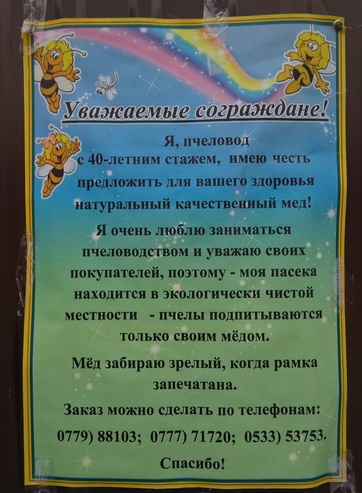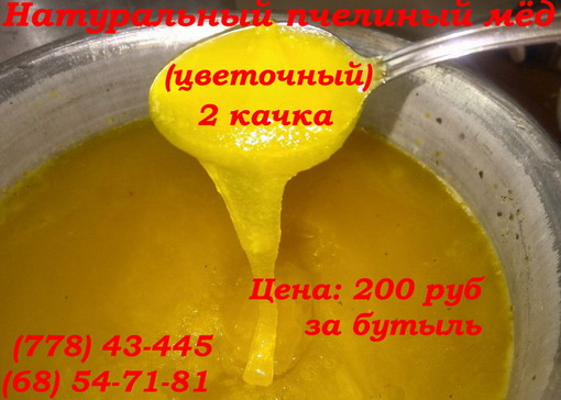 И все-таки я попытаюсь :ai:. Мёд выращиваю не я, а моя приятельница Надежда из Тирасполя. Сама пасека расположена в Григориопольском районе. В этом году май был дождливый поэтому майского меда нет, только цветочный и уже второй качки, скоро третья будет... Так что проживающие в Бендерах и Тирасполе, заинтересовавшиеся натуральным медом, пишите в личку, а лучше звоните. Вложение 19334 |