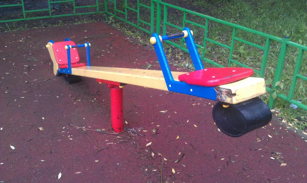 Сидения многих качелей имеют конструкцию с металлическим уголком. То есть, если ребенок случайно пробегает мимо, а кто-то вовсю катается, то удар по голове может стать смертельным. Или когда ребенок сам спрыгивает с качели, а она бьет этим сиденьем с метал. уголком со всего размаха по голове. Возможны серьезные травмы, переломы черепа - вплоть до летальных исходов. Я не понимаю, что мало пластика, чтобы сделать пластиковые сиденья для качелей, а не прямоугольные деревянные сиденья, обитые металлическим уголком. |