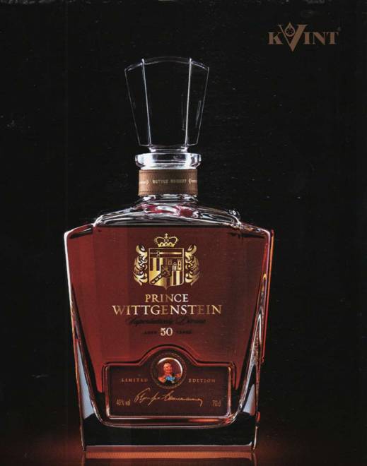 Вложение 20552 Назван в честь русского генерал-фельдмаршала Петра Витгенштейна, способствовавшего развитию виноделия на левом берегу Днестра. Коньяк янтарного цвета обладает сложным букетом, полным вкусом и долгим послевкусием. Выпускается в эксклюзивном хрустальном графине, инкрустированном золотом, и шкатулке, изготовленной из ценных пород древесины. Изнутри шкатулка отделана белой оленьей кожей. Выпускается в бутылках ёмкостью 0.75 л. Алк. 40 % об. |