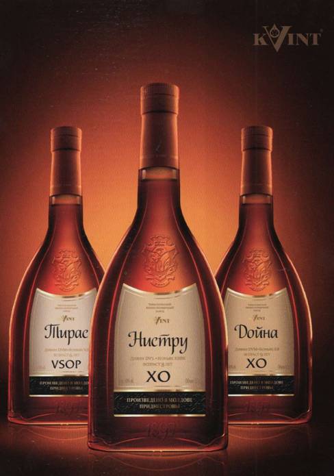 Вложение 20556 Готовятся по классической технологии из собственных высококачественных спиртов, выдержанных в дубовых бочках. «Тирас» и «Дойна» - коньяки великолепного золотисто-янтарного цвета с развитым гармоничным букетом. «Нистру» - коньяк легкого, слаженного вкуса, обладает необыкновенной мягкостью. Выпускается в бутылках ёмкостью 0.5, 0.7 и 0.75 л. Алк. 40 % об. |