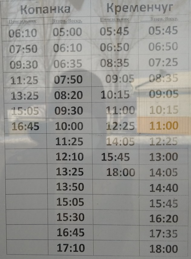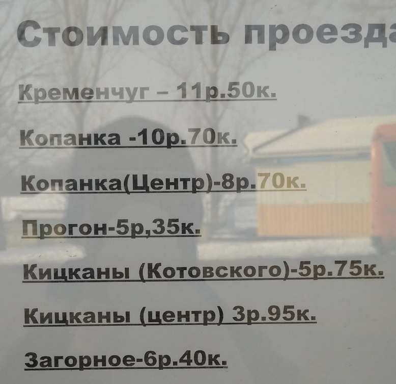 Расписание маршруток с Тирасполя от моста в село Кицканы, в Копанку и Кременчуг.