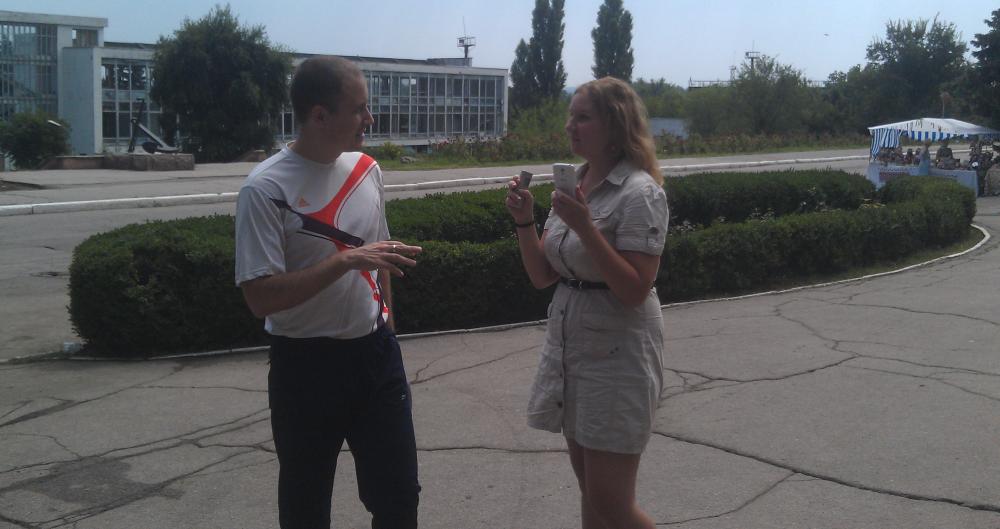 Игорь рассказывает про батарейки, Михаил (Чистая Республика) дает интервью журналистке.