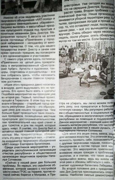 В бендерской газете "Новое Время" упомянули нашу организацию "Чистая Республика" и Наталью!