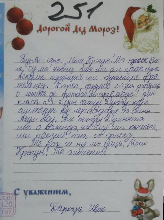 Письма Деду морозу. Благотворительная акция почты ПМР 2017. Дубоссарская почта.