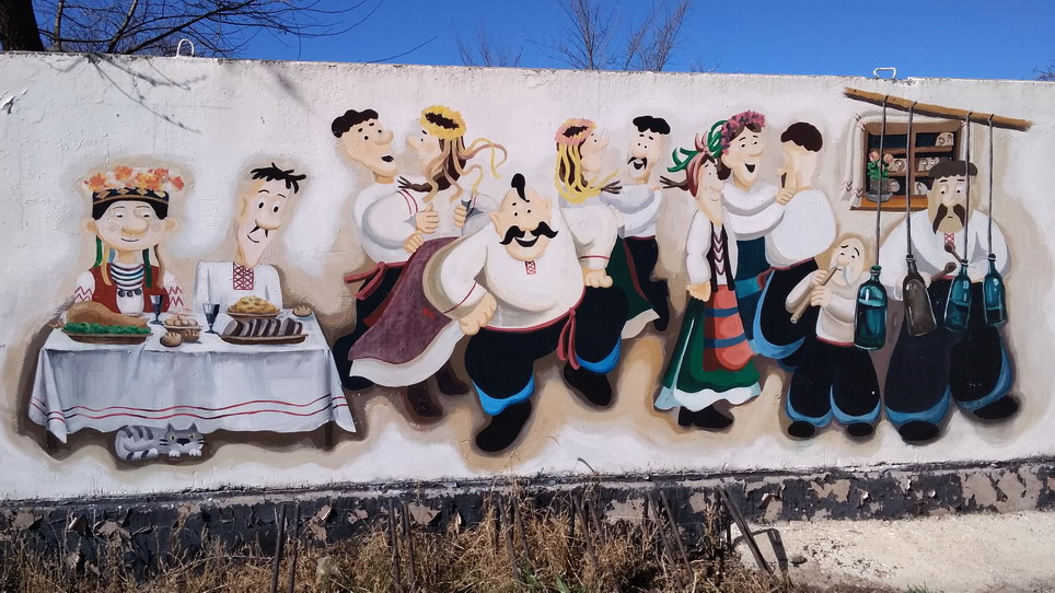 Раньше рядом с этим графити была местная дискотека и бар "Апкльсин", но народу мало, остался только красивый рисунок на стене.