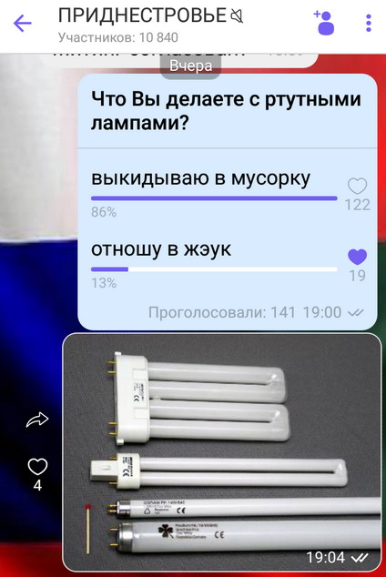 Я вот сегодня сдал лампы и градусники в ЖЭУК - в который в рабочее время я не мог пойти, так как в отпуске. Градусники - их кидают в коробки для батареек, т.к. про прием ЖЭУКами не в курсе население. Лампы на мусорках... "Принятие эффективных мер по снижению оборота ртути в Приднестровской Молдавской Республике." - в статье нет ничего, какие конкретно меры принимает Государственная служба экологического контроля ПМР (( например - наклеиваются информлистки на подьезды, мусорки. - создаются пункты приема нградусников или ламп - инициируются изменения в работе САХ - чтобы лампы/градусники изымались с мусоросборников. итд. может сделали удобный вывоз ртутных ламп для юрлиц с каменки/рыбницы? или запретили ввоз ртутных градусников? чтобы только электронными пользовались? |