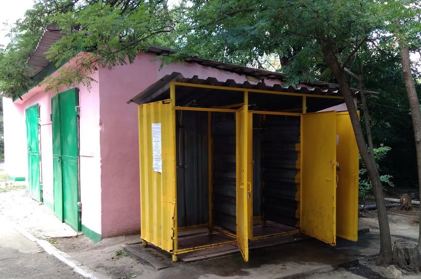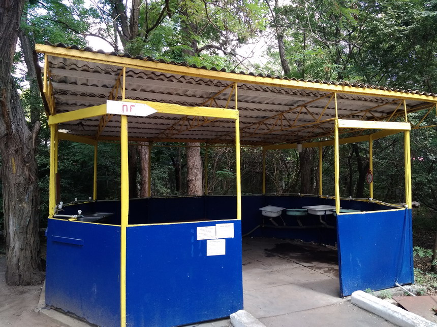 Советские умывальники и душевая с комарами на улице, где тебя атакуют комары ))