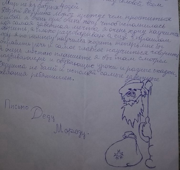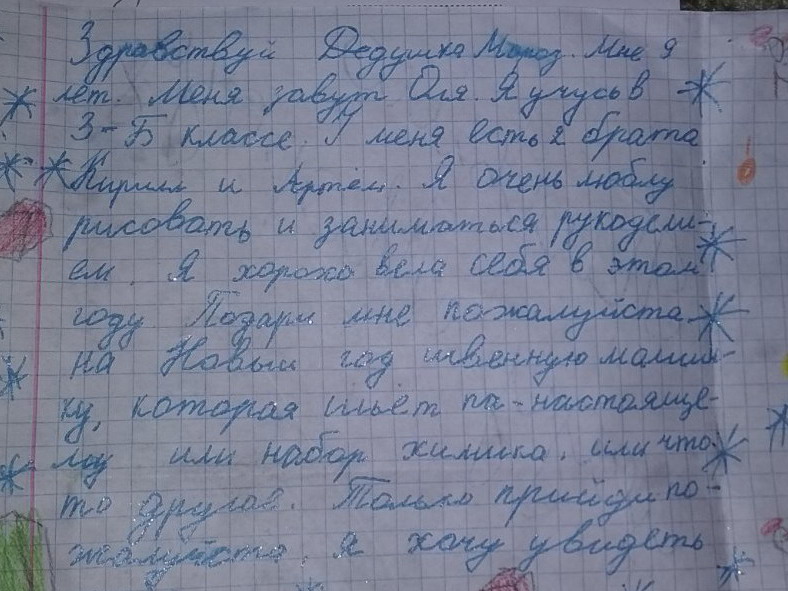 Просит хоть что нибудь в подарок хоть один раз себе и сестре Оле. Вложение 27266