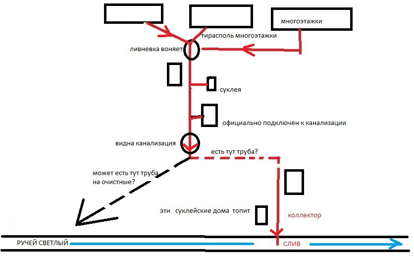Фекальная канализация сливается в ручей светлый, а потом Днестр.