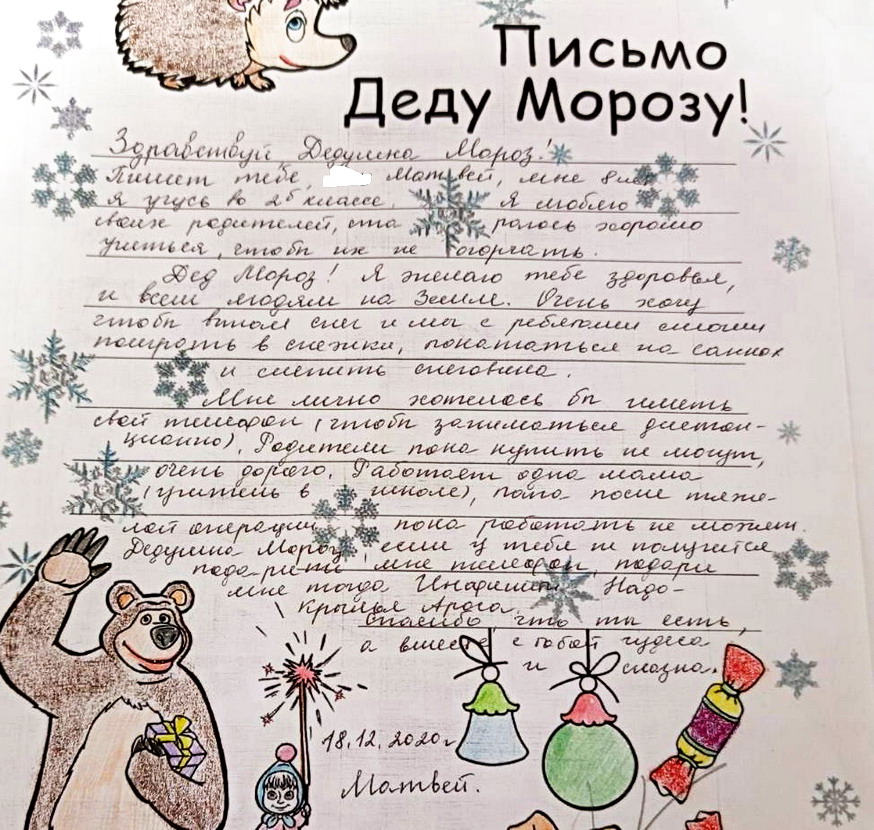 5.пос. Красное, Матвей, 2 класс, просит свой телефон для дистанционного обучения, мама учитель (зп 3000р), папа болеет - после операции на головной мозг.