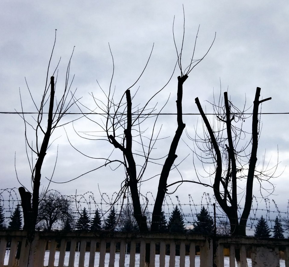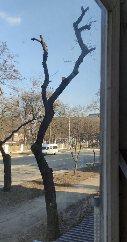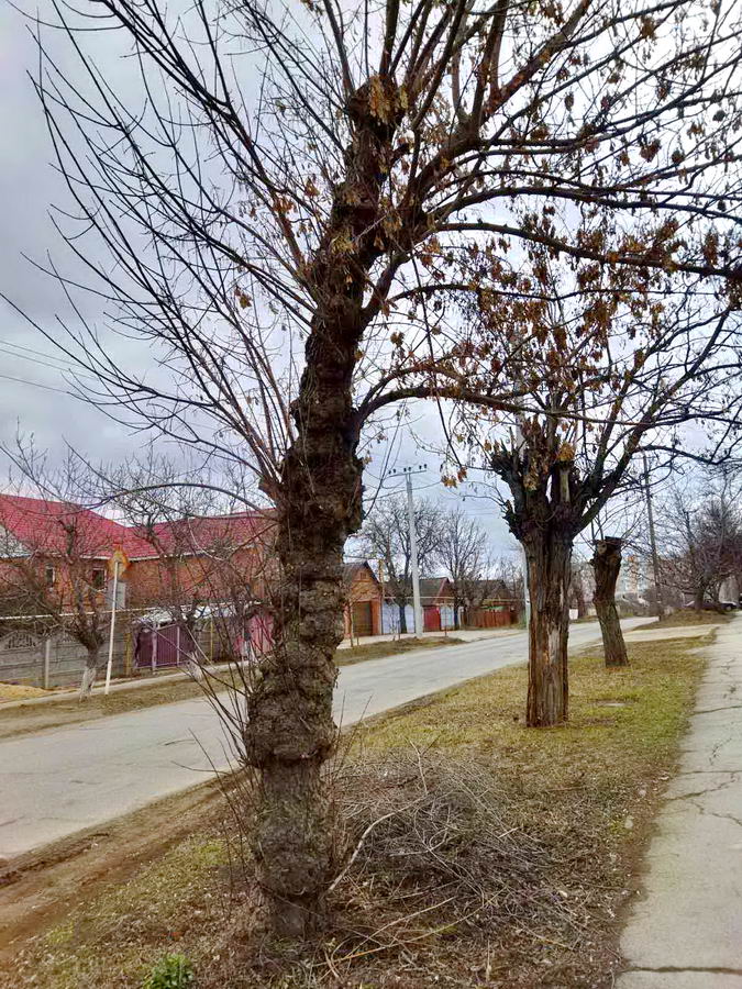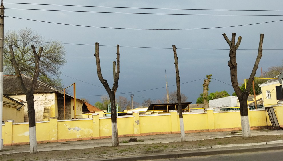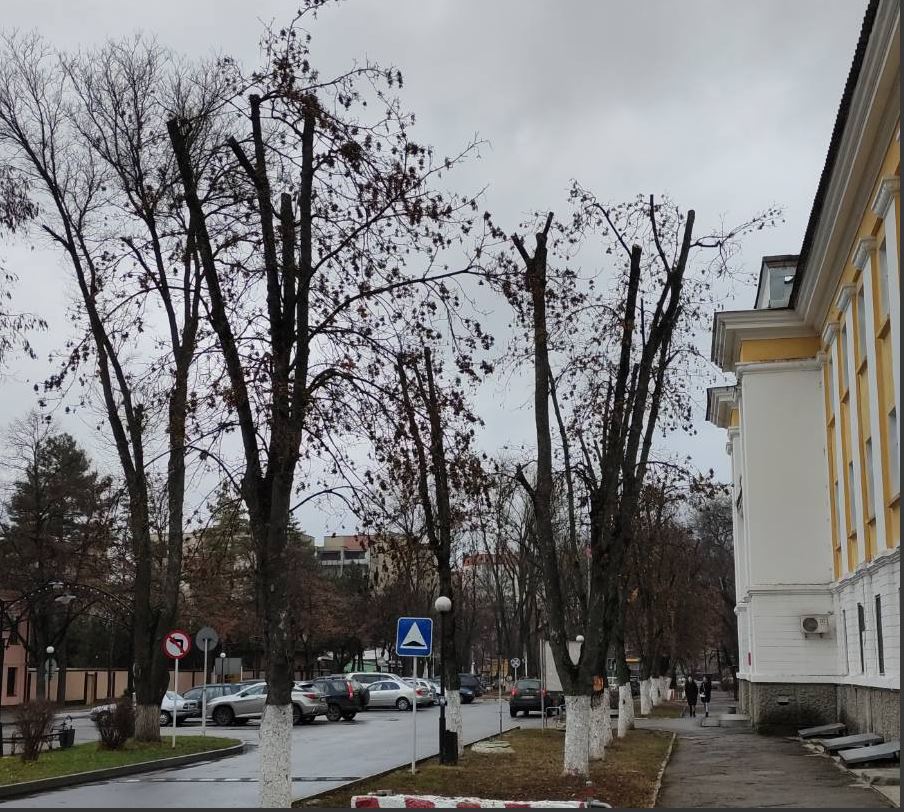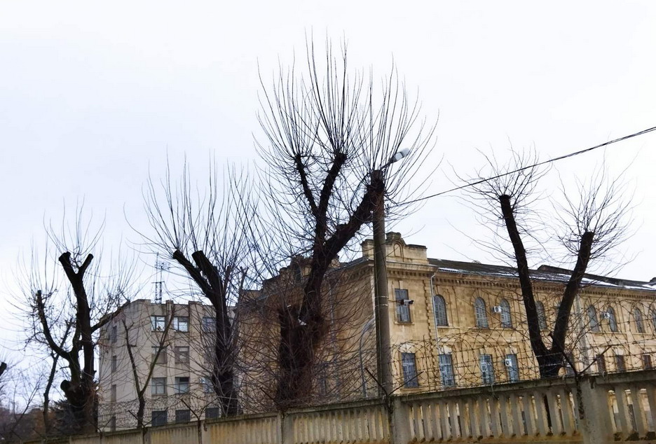 Посмотрим весной что будет с деревьями после такой обрезки веток, красные казармы в Тирасполе.