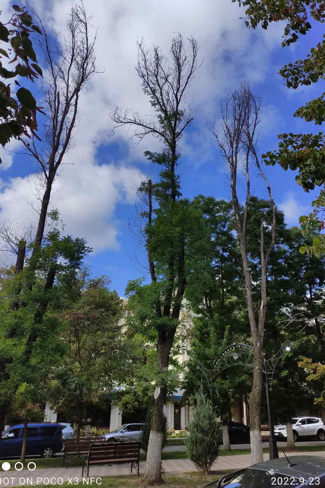 Напротив дома 12 по улице Мира было спилена полностью верхушке дерева. Хотя дерево полностью было живое и давало много тени (сторона восточная, при восходе солнца и в первой половине дня в квартире была тень, и заграждение от пыли, которая летит с дороги оживленной). Остался уродливый пень огромной высоты. Пожалуйста, на основании чего был произведен такой варварский спил? Рядом в метрах 7 стоит такое же дерево, этого же вида. На нем спилили только немного нижних веток. Почему одно полностью почистили от веток, другое оставили? Ещё раз повторяю, что дерево полностью живое было этим летом, ни одной сухой ветки. Вложение 28536Вложение 28537 Ответ: Вложение 28538 |