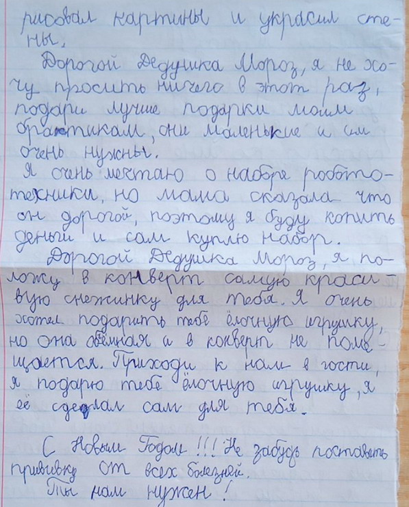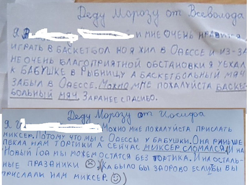 Акция "Письмо Деду Морозу" 2022, Детские письма от Почты Приднестровья.