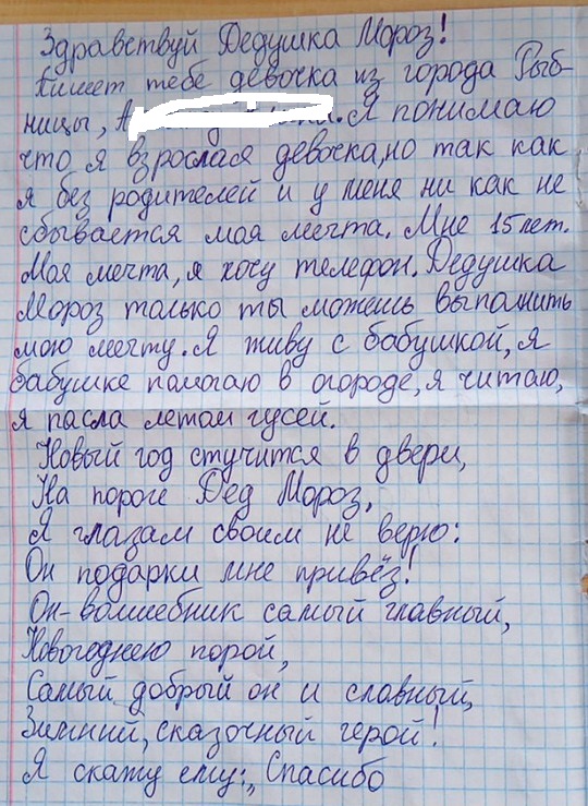 Девочке 8 лет, живут без отца, просит телефон. Брат 4 года. игрушечную машинку. Сестричка 3 года. куклу барби. Можно СДМА телефон, или Компьютер. Вложение 28871Вложение 28870 Исп. Игорь/Максим/Дима/Витя - подарили компьютер, игрушки. Минфин подарил девочке телефон. Вложение 28922Вложение 28923