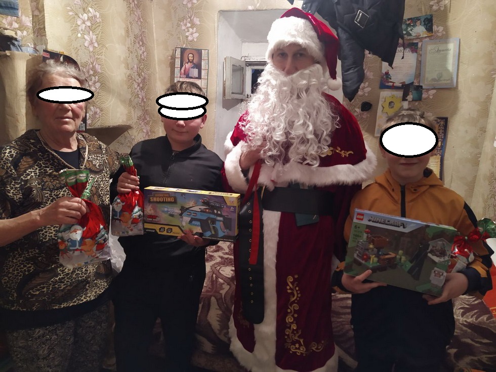 Девочка 12 лет, волейбольный мяч и насос к нему. Мальчик 10 лет - мобильный телефон для учебы Девочка 9 лет - чемоданчик "Набор юного художника", масляные краски 145 предмета. Мальчик 6 лет - машинку с пультом управления. Вложение 28866 Исполнитель - НКО "Поможем Вместе". Так же подарили телефон СДМА - Артема_С. Вложение 28907 Команда помощников Деда мороза собрала и отвезла компьютер в эту семью. Дали им детских вещей. Вложение 28916