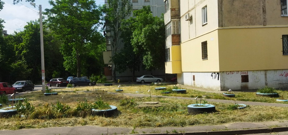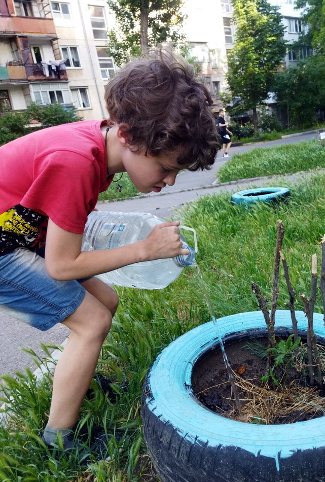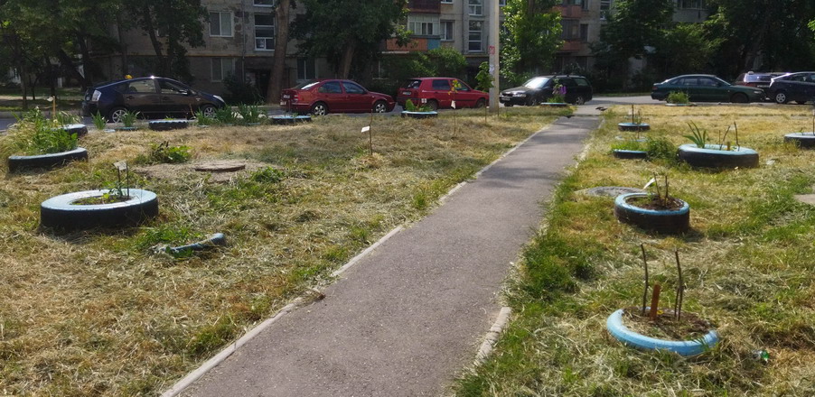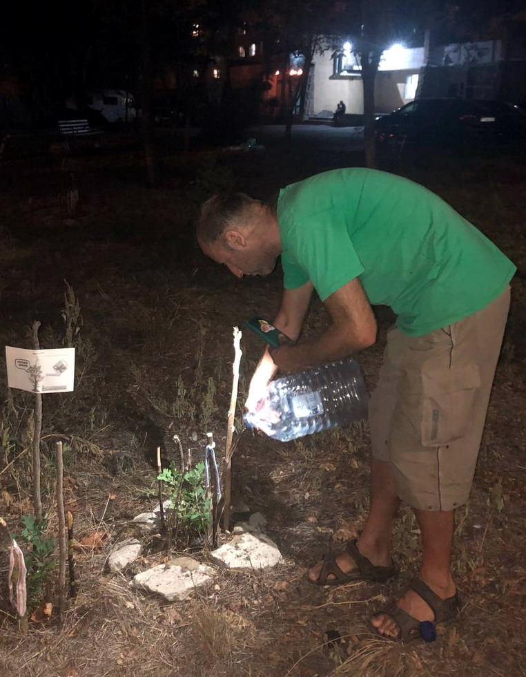 Поливали сегодня саженцы в скверах у Зари и Виктории. Волонтер Игорь привез воду. После работы вместо ужина занялся поливом саженцев. Через пару лет на этих заброшенных пустяках будут скверы с деревьями.