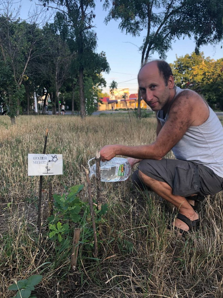 На выходных с Андреем Чобра (волонтер ЭкоПМР) - поливали саженцы дуба в сквере у Зари.
