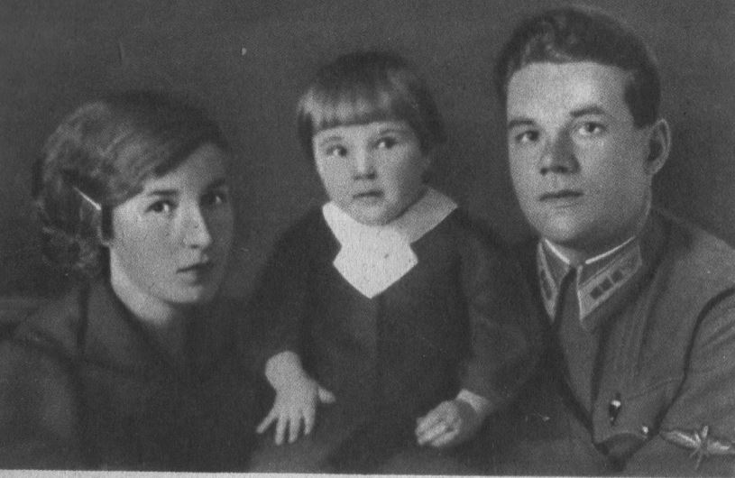 Григорий Кулишенко с женой Тамарой Алексеевной и дочерью Инной. Кое-кто, побаиваясь, «как бы чего не вышло», даже дает советы насчет поблажек, но Акимыч не признает никаких компромиссов. Меньше всего он заботится о том, чтобы «сверху» не нагорело, и думает только о судьбе молодого человека и летчика, начинающего самостоятельную жизнь. А когда подшефный из ухарства потребовал, чтобы командир тотчас отправил его в самостоятельный полет па четырехмоторном бомбардировщике, Кулишенко, насупив густые брови, сказал: — Даже если бы сын легендарного начдива оказался еще и правнуком Суворова, все равно я не разрешил бы ему полет, пока он не будет готов к этому. И те, кто были свидетелями разговора, увидели, каким суровым и непреклонным может, когда надо, стать их командир. Требовательность Акимыча не была односторонней. Больше всех он спрашивал с самого себя. Кулишенко не могло успокоить то, что его считают одним из лучших боевых летчиков соединения. В нем вечно присутствовало здоровое чувство неудовлетворенности уже достигнутым и жажда новых высот. В те дни в небе Отчизны ярко запылали Золотые Звезды первых Героев Советского Союза, которые на далеком Севере спасли славных челюскинцев. Потом взошли легендарные имена советских соколов — экипажей Чкалова, Громова, Коккинаки, осуществивших неслыханный перелет из одного конца мира в другой, летавших дальше всех, выше всех, лучше всех. Из этой славной плеяды героев Чкалов был особенно близок Кулишенко. 56 часов в воздухе, 10 тысяч километров без посадки над Баренцевым и Охотским морями, Ледовитым океаном — для Кулишенко эти цифры звучали как песня. Но еще больше покорял его сердце и мысли яркий, самобытный образ самого Чкалова — неугомонного человека и бесстрашного летчика. На первой странице тетради, которую Акимыч всегда носил с собой в полевой сумке, у него записаны чкаловские слова: «Я буду держать штурвал самолета до тех пор, пока в моих руках есть сила, а глаза видят землю». Учиться у героев мужеству, быть во всем похожим на них, перенять все тонкости чкаловской техники пилотажа— вот мечта Акимыча, и об этом он много думал вместе с летчиками своего отряда. Путь к осуществлению высокой мечты всегда нелегок. С новыми силами, с новым упорством штурмует Кулишенко вершины мастерства. |