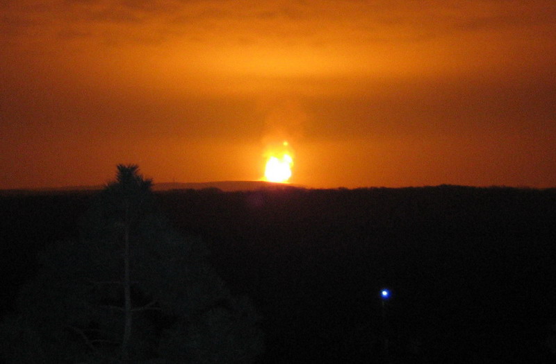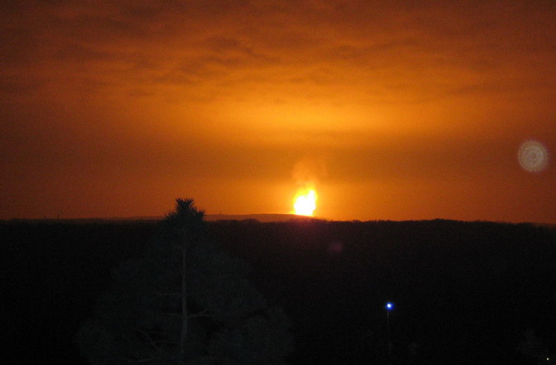 Дом прямо колбасило, стёкла дребезжали и всё ходуном ходилио. И светло как днём, я вначале подумал, что ядерная бомба рванула в Тирасполе, а потом когда по часам понял, что это на долго, смекнул, что это наверное нефтебаза, или газопровод высокого давления рванул, а газ нефига никто перекрыть не может, и газ маслает в небо по полной, а давление там в трубах больше 100 атмосфер. И нам всем очень сильно повезло, что газ СРАЗУ ЗАГОРЕЛСЯ, а то если бы он вытекал не горя, то могла образоваться адская смесь, и снесло бы какое-то село или микрорайон при взрыве. А так просто был очень мощный и очень яркий факел. Хотя по любому было типа страшно, - как СЛАБ человек перед стихией ! Гул, грохот, тряска и яркий жёлто-оранжевый свет, когда на улице темень непроглядная. До того пламени было где-то километров 10, а колбасило и светило по полной. |