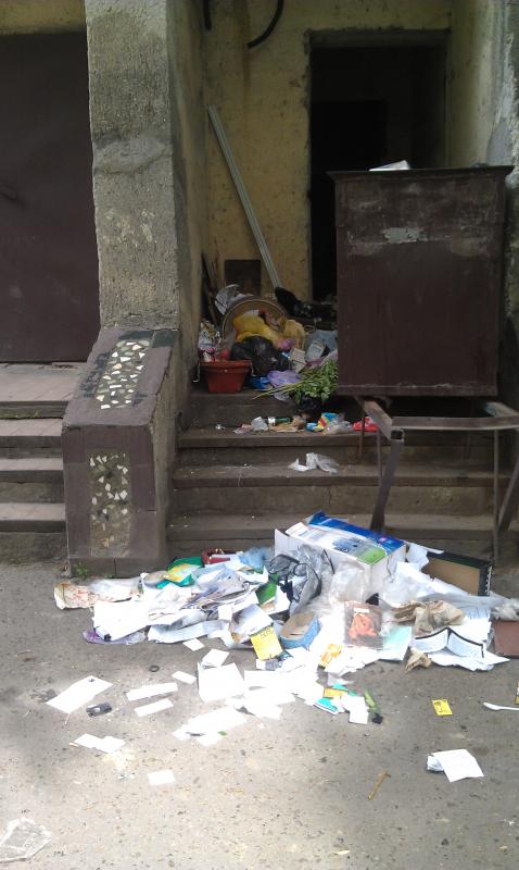 Сегодня утром у подъезда такая картина, контейнер для мусора полупустой, вчера был с горкой: