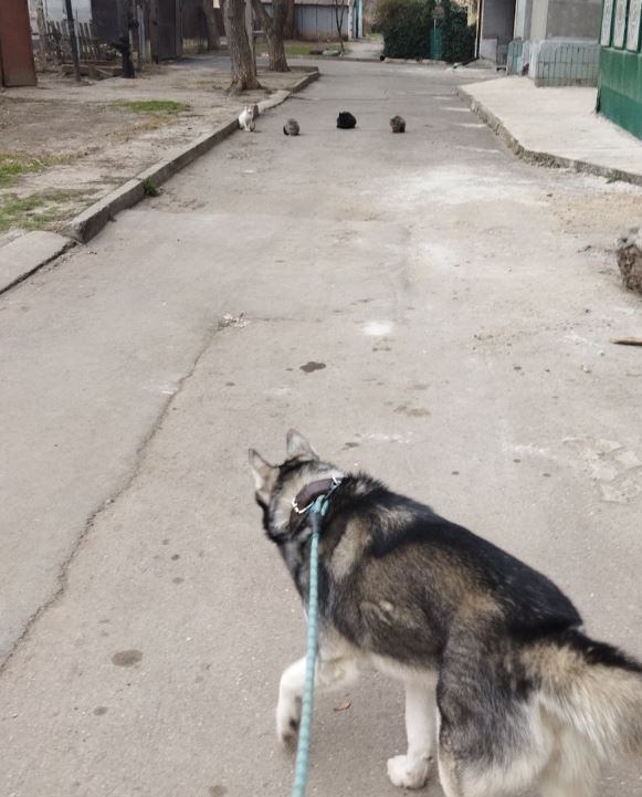 Собака вышла на прогулку, а там ей 4 кошки набили "стрелу".