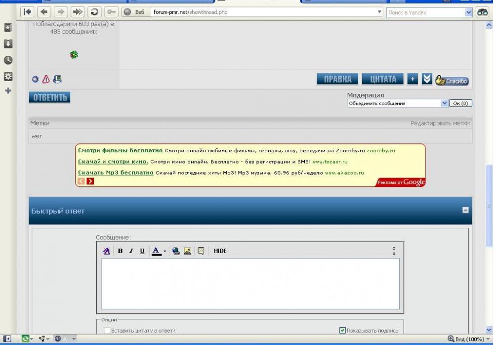 Вопрос на повестке дня у Лампады. Она не может писать ответы на форуме в любой теме. У неё просто НЕТ окошка "быстрый ответ". Куда он исчез - неизвестно.