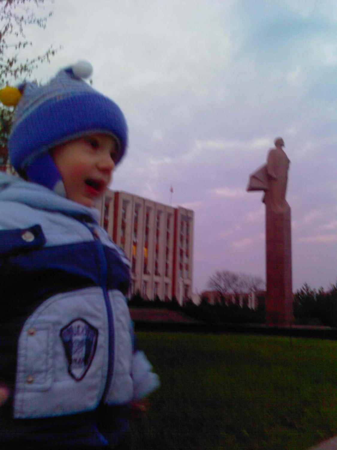 Не очень получилось, но хотел сделать фото как сын или злиться на памятник Ленину, или же ломает его кулачком.