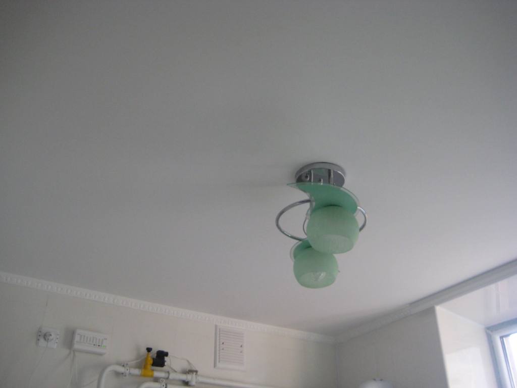Нет не на ткань....люстра крепится к основному потолку и идеально уже подводится к натяжному.
