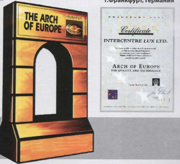 Энтузиазм коллектива, высокий профессионализм, необходимая производственная база позволили фирме «Интерцентр Люкс» занять лидирующие позиции среди предприятий СНГ и успешно работать на международном рынке. В 2001 году во Франкфурте-на-Майне, Германия, фирма была удостоена высокой международной награды «Золотая Арка Европы» за высокое качество и новейшие технологии.