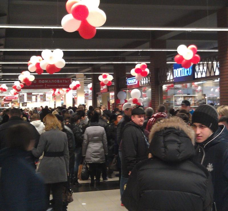 Очередь у входа в супермаркет большая, простоять нужно порядка 20-30 минут, это уже третий день работы!