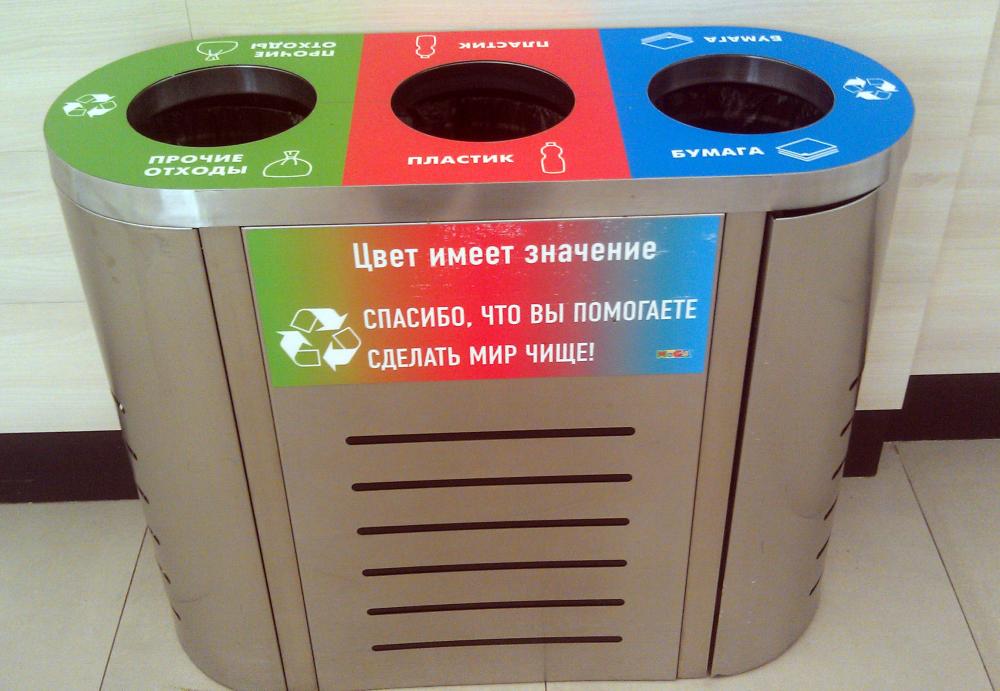 Сбор отходов в московском супермаркете Мега.