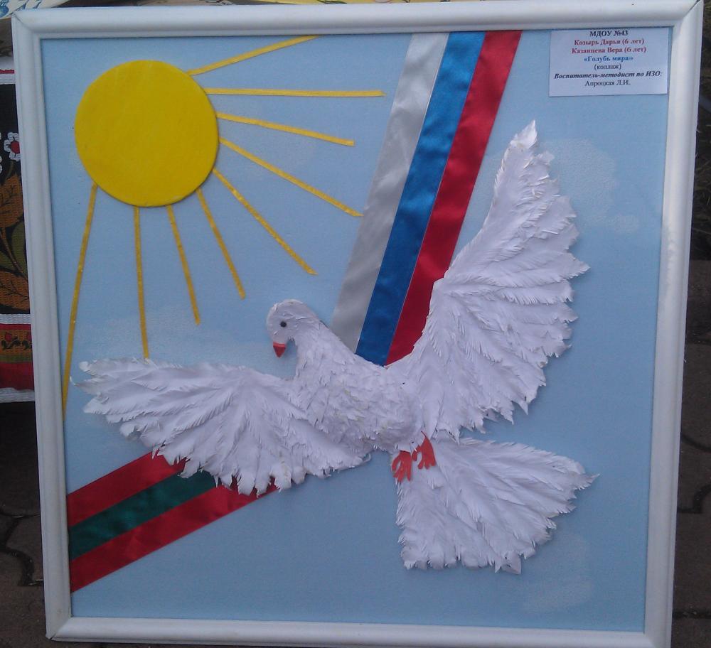 "Голубь мира", Козырь Дарья и Казанцева Вера - 6 лет. Коллаж. Садик №43. |