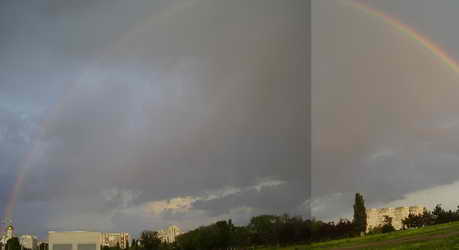 Вот в фотошопе как умел скомпоновал радугу с 2 фото.