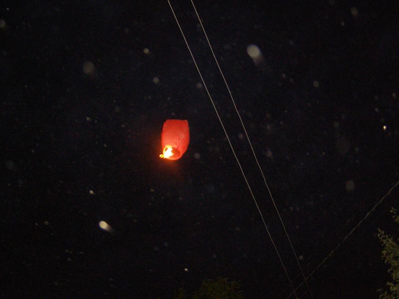 была я в прошлом году на таком мероприятии...вернее была вовремя в центр гулять вышла и зрелище видела..возле кинотертра...значит было фонарика 3...один вроде не взлетел второй,там где сцена есть деревья...вот этот самый фонарик поджег бедное дерево...я уже думала звонить в пожарку...но ветвь уже потухла...поэтому негативные эмоции...