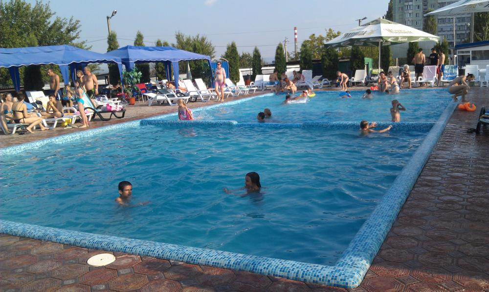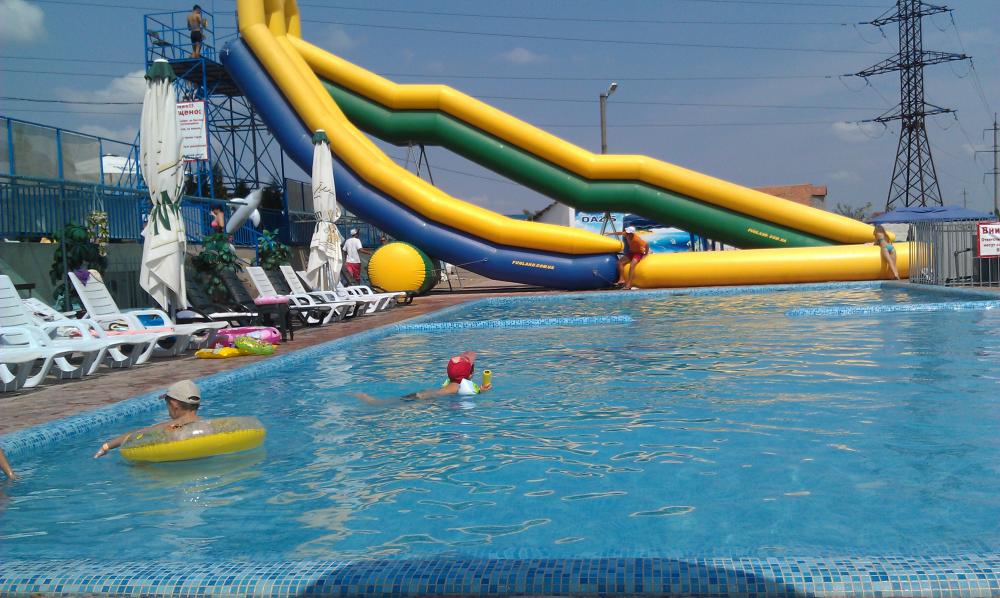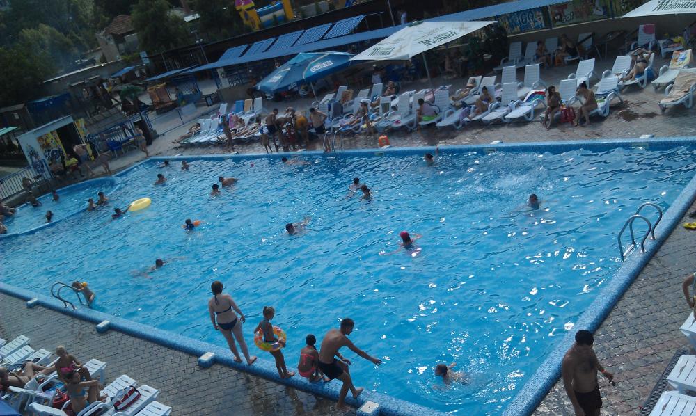 В Оазисе есть три бассейна - один большой глубокий для взрослых с небольшим кругом (лягушатником) для малышей, детско/подростковый бассейн глубиной с полметра и более метра и бассейн с соленой водой глубиной с метр. Так же есть две горки, которые периодически работают, у них вечно очередь. Вход в бассейны+горки на выходные сейчас 130 лей с человека. Пиво "Кишиневское разливное" в Оазисе недорогое - порядка 12 лей. Столик для отмечания всяких торжеств можно арендовать за 300 лей на день. |