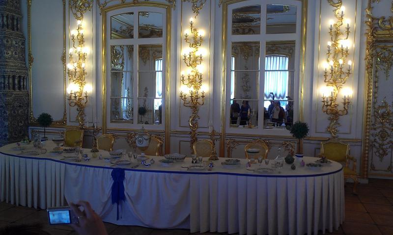 Очереди в сам Екатерининский дворец огромные, стоять пришлось порядка 1-2 часов. Вот несколько фото изнутри дворца: залы, интерьеры, роскошь и убранство. Парадная лестница. Большой зал. Екатерининский дворец. Арки Екатерининского дворца. Дворцовая печка. Кавалерская столовая. Обратил внимание на качественный паркет, по которому прошли миллионы ног туристов. |