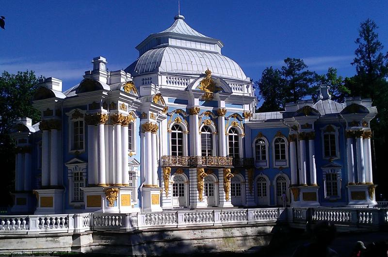 На картине показано, каким был Екатерининский дворец сразу после второй мировой войны. Хвала реставратором! Екатерининский парк - Верхняя ванна Павильон Эрмитаж Золотые купола у Екатерининского дворца. |