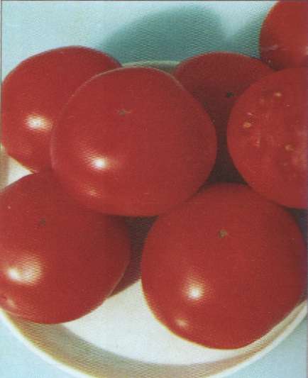 Сорт среднеранний. Растение детерминант-' ное, мощное, хорошо облиственное. Плоды плоскоокруглые, прочные, ярко-красные, плотные, транспортабельные, массой 130- 180 г. Вкусовые качества хорошие. Для сорта характерна дружность плодоношения. В рассадной культуре урожайность составляет 80- 100 т/га и более. Пригоден для безрассадной культуры. Предназначен для потребления плодов в свежем виде и изготовления пасты и сока.