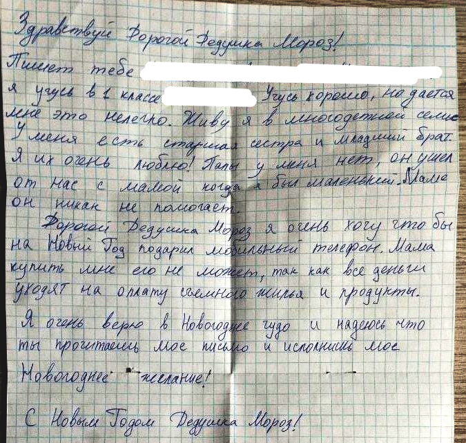 Василий 4 года, Евгений 6 лет, Андрей 9 лет, Сергей 11 лет, Саша 16 лет. 5 братьев, просят ноутбук или компьютер для учебы, для младших братьев - машинки или роботов. Мы (ЭкоПМР) передали компьютер "Волонтерам Приднестровья" - по акции "Письмо Деду Морозу" дети попросили компьютер на Новый Год .... Они отвезли-вручили.