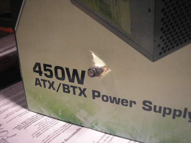 Ремонтировал ноут ТОШНИБА. Дефект , умерший адаптер. С виду ничего сложного. Ну где утром, в воскресенье найдешь адаптер для ТОШНИБЫ. Нашел старый АТешный блок, доработал до нужных напряжений и мощностей. Подключил. Дабы ничего не замкнуть, не уронить, сей ХЕНД-МЭЙД, положил в коробку. ОТремонтировал плату, собрал ноут. Включил. Ноут поругался на батарею, дату время, неверный чек сум и запустился. ТЕстить особенно времени не было, запустил фильм. Через мин 20, из коробки вспышка молнии и хлопок. Отстрелил взорвавшийся конденсатор.