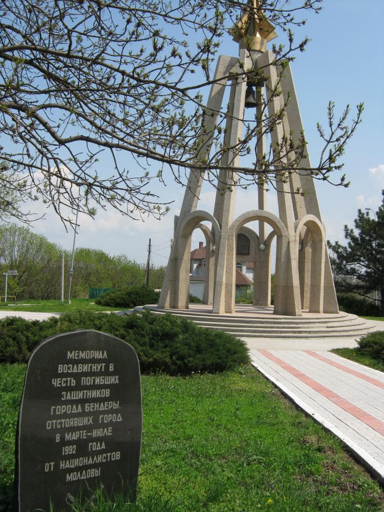 Камень у мемориала «Памяти и Скорби», воздвигнутого в память о защитниках города Бендеры, погибших в ходе вооруженного конфликта в 1992 году Колокольня на мемориале «Памяти и Скорби»: Памятный знак на мемориале «Памяти и Скорби»: БМП на мемориале «Памяти и Скорби» Арка, установленная в честь 600-летнего юбилея города: |