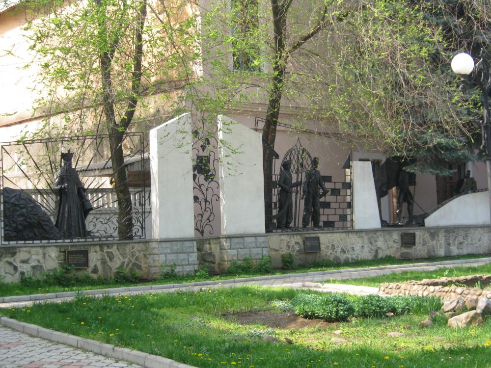 Фонтан с возвращенными городу лягушками: Фонтан в сквере у ДК. им. П. Ткаченко: Музей истории Бендер под открытым небом: Сквер у Госадминистрации – одно из любимых мест отдыха горожан: Преображенский собор - древнейший на территории Приднестровья.