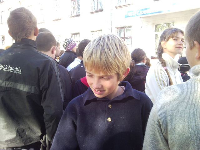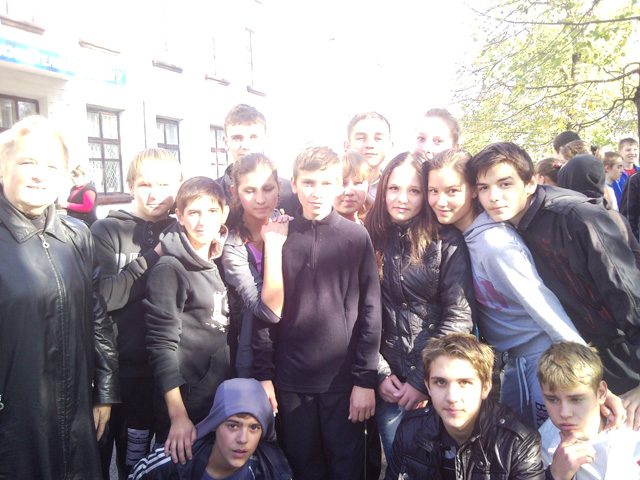 Станция с проныриванием через кольцо: Остальные станции впопыхах снять забыли, т.к. классный руководитель, как я уже говорил, вместе со всеми участвует: бегает, прыгает, пролазит, поет и т.д. Каждый судья отличался от прочих педагогов пионергалстуком яркокислотного цвета. Мне достался зеленый. Сначала хотел повязать его, как бандану, но скользкий шелк, падла, скатывался с волос. Вот, первый раздолбай школы, избавился, наконец, от своего галстука и навязал его на координатора. Та, сразу же потребовала себе красненький еще, чтобы быть светофором, но он был на ком-то другом. Отпрыгавший свое 10-й класс попался на глаза моему мобильнику, который я еще не успел отобрать: Далее, всех начинающих уголовников собрали на вторую линейку, объявили, что результаты будут объявлены позже и отправили на классные часы. Так как у всех были поголовные "сладкие столы", то классные часы везде превратились в обжираловку. Про меня, кстати, забыли, я на всех обиделся и ушел домой обедать. Какой-то из 9-х классов сразу после линейки (я первый раздолбай в школе - поэтому до сих пор их не запомнил): Телефон проходил мимо какого-то из 6-х (см. примечание к "Какой-то из 9-х): Последний раз редактировалось Модер; 03.12.2015 в 19:32. |