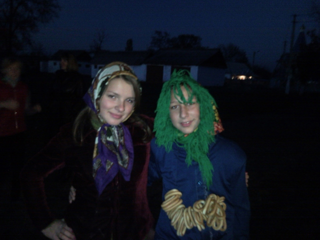 Собственно, все построились на подведение итогов. 5-м и 6-м сказали их заранее и прогнали домой. Дело к ночи, а они мелковаты. Позади всех, школьный плац приятно декорирован церковью, гаражом, сараем и туалетом модели "сортир": Завуч по воспитательной работе, товарищ Антонина, озвучивает результаты и вручает грамоты. На переднем плане директор-сам, на заднем, двое уже известных раздолбаев: Пока еще не совсем стемнело, пошли номера художественной самодеятельности, чтобы народ повеселился. Кто что приготовил. Вот, 7-клашки танцуют чегой-то: 8-клашки поют. Точнее поет одна девочка, остальные в подтанцовке с шариками. Дальше снимки сильно замыленные, т.к. темнело, и, хотя освещение было отличное, мой телефон со мной был категорично не согласен. 9-й класс кого-то собрался изображать. Поймал их на пути к микрофонам. Успел снять. |