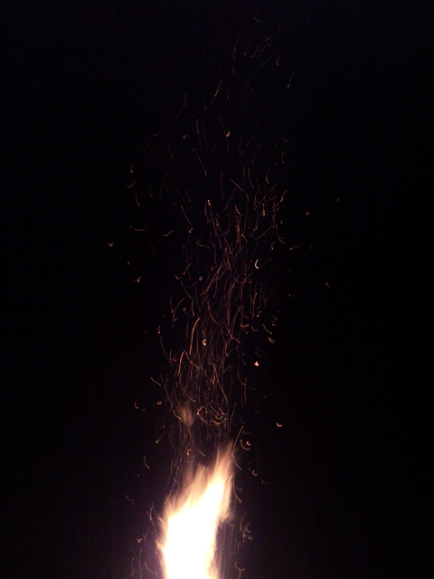 Ди Джей Катя: Начало Главного События Дня: костер разжигают. Все аккуратно стоят за заграждением. Педагоги рыскают туда сюда и выхватывают самых отчаянных, которые рвутся через него попрыгать. Разгорелся на славу. Уже никто прыгать не рвется. Жар чувствуется даже с 4-х метров: Высокий, блин... Хотя, говорят, что в прошлом году переборщили с дровами и был еще раза в три выше. Директор довольно потирает руки: праздник удался. |