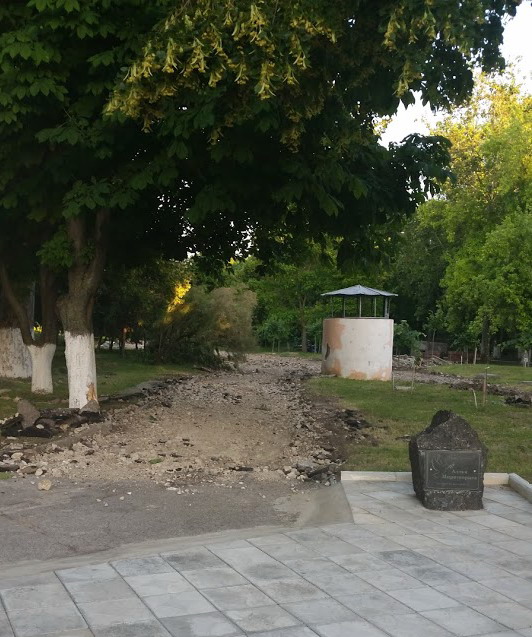 Вчера обнаружила перекопанные дорожки возле ДК Ткаченко, уже завезена тротуарная плитка... в центре сквера залит постамент, вероятно ожидается какой-то памятник... Так же сквер засажен молодыми деревцами, около каждого именная табличка с фамилией и инициалами человека посадившего дерево (как по мне, идея отличная). Даже не верится, что этот парк приведут в порядок. Очень-очень рада) |