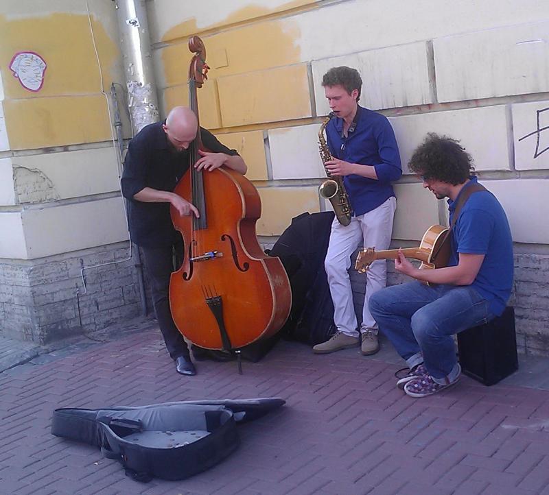 Понравилось, как уличные музыканты играют вроде блюз недалеко от Невского.