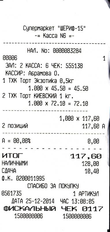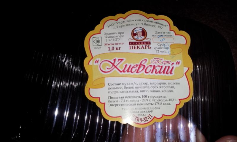 Картинка этикетки Киевского торта и товарный чек прилагаются.