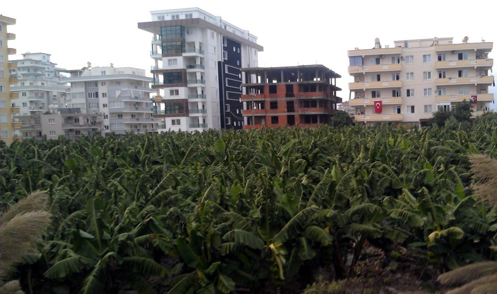 В почти трехчасовой дороге к Алании (мы были в в её пригороде) в основном видны такие типичные турецкие дома (почти на всех 3-5 этажных домах есть металлическая бочка для согрева воды солнцем) и довольно часто встречаются теплицы: Вот еще несколько фото типичных домов (часто есть бассейн во дворе) у берега моря, и вид на Махмутлар (Алания) с начала горы. Как видно - отели рядом с банановой рощей. |