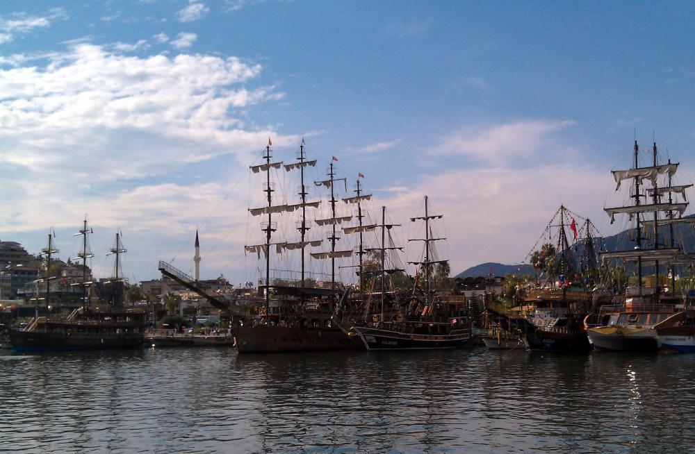 Немного про развлечения: Прокат велосипедов: 1 час 1 доллар. Велосипеды в основном убитые. Джип сафари - 18$ катаешься по горам + 1 раз кормят. Крепость в Аланьи - бесплатный вход. Катание на корабле вдоль берега Алании, обед, 3 раза купания, в конце - шору программа и пенная дискотека: 15$. Это было просто супер! Капитан корабля отжигал. Чего стола только фраза "Виагра" - чтобы люди в обед быстрее брали еду! А сам пиратский корабль - очень красив. |